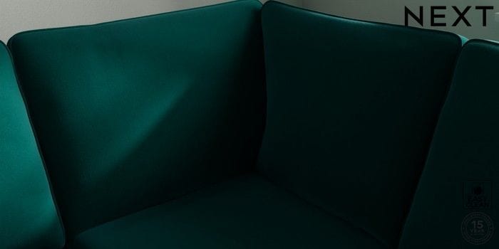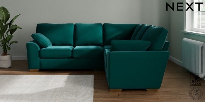 7.2.10 Buy Stamford Medium Corner Sofa - Universal Plush Velvet Easy Clean Juniper Green Large Square Angle - Brushed Brass from the Next UK online shop Click here to use our accessible website