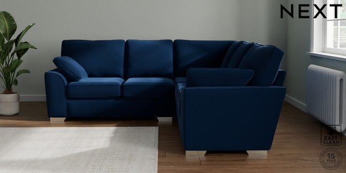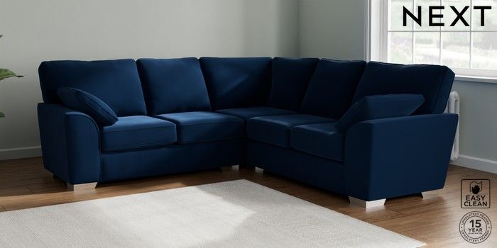 7.3.1 Buy Stamford Medium Corner Sofa - Universal Plush Velvet Easy Clean Navy Blue Large Square Angle - Chrome Metal from the Next UK online shop