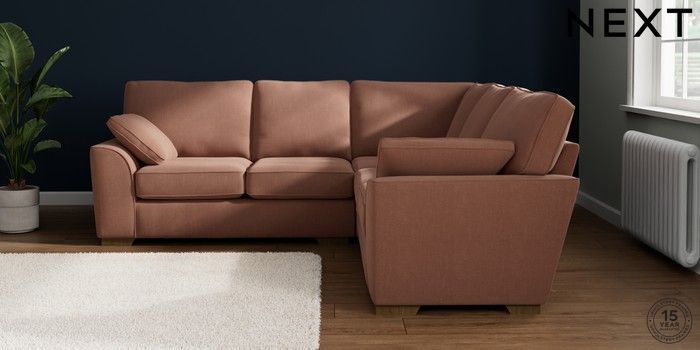 7.2.10 Buy Stamford Medium Corner Sofa - Universal Relaxed Linen Look Light Rust Brown Large Square Angle - Mid from the Next UK online shop Click here to use our accessible website