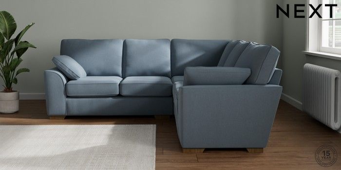 7.2.10 Buy Stamford Medium Corner Sofa - Universal Relaxed Linen Look Mid Blue Large Square Angle - Mid from the Next UK online shop Click here to use our accessible website