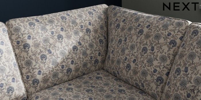 7.3.1 Buy Stamford Medium Corner Sofa - Universal Relaxed Linen Look Print Woodblock Floral Blue Large Square Angle - Light from the Next UK online shop Click here to use our accessible website