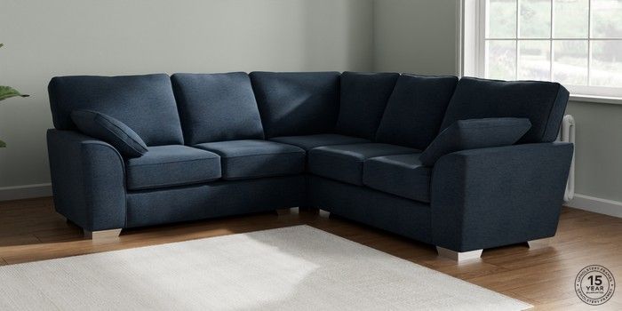 6.12.1 Buy Stamford Medium Corner Sofa - Universal Ripple Chenille Dark Blue Large Square Angle - Chrome Metal from the Next UK online shop Click here to use our accessible website