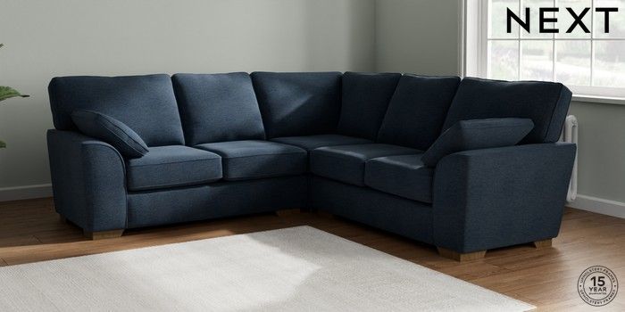 7.2.6 Buy Stamford Medium Corner Sofa - Universal Ripple Chenille Dark Blue Large Square Angle - Mid from the Next UK online shop Click here to use our accessible website