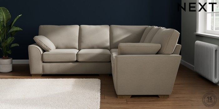 7.2.10 Buy Stamford Medium Corner Sofa - Universal Ripple Chenille Light Natural Large Square Angle - Mid from the Next UK online shop Click here to use our accessible website