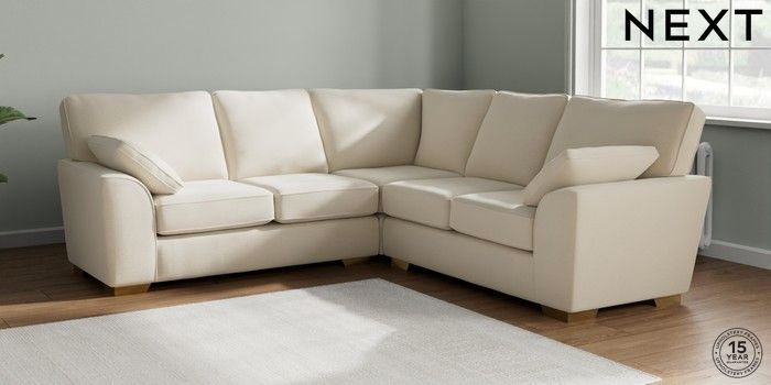 7.2.10 Buy Stamford Medium Corner Sofa - Universal Ripple Chenille Mid Moss Green Large Square Angle - Brushed Brass from the Next UK online shop Click here to use our accessible website