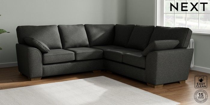 7.2.6 Buy Stamford Medium Corner Sofa - Universal Tweedy Blend Easy Clean Charcoal Grey Large Square Angle - Mid from the Next UK online shop Click here to use our accessible website
