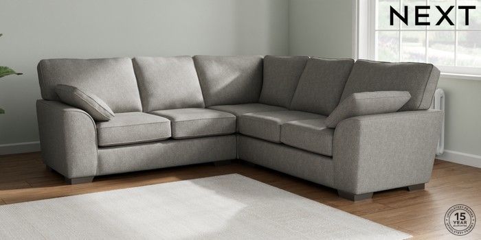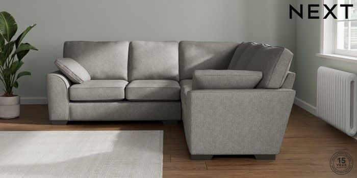 7.2.10 Buy Stamford Medium Corner Sofa - Universal Tweedy Chenille Mid Grey Large Square Angle - Gunmetal from the Next UK online shop Click here to use our accessible website