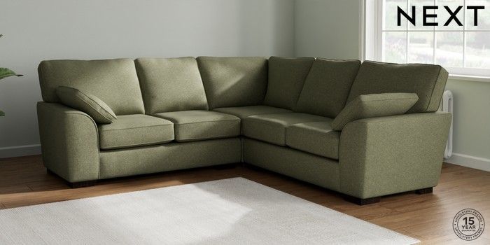 7.2.10 Buy Stamford Medium Corner Sofa - Universal Tweedy Chenille Mid Moss Green Large Square Angle - Dark from the Next UK online shop Click here to use our accessible website