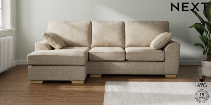 7.2.6 Buy Stamford Medium Sofa Chaise - Left Hand Boucle Weave Easy Clean Dark Natural Large Square Angle - Light from the Next UK online shop Click here to use our accessible website