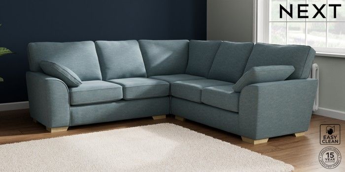 7.2.6 Buy Stamford Medium Corner Sofa - Universal Fine Chenille Easy Clean Mid Blue Large Square Angle - Light from the Next UK online shop Click here to use our accessible website