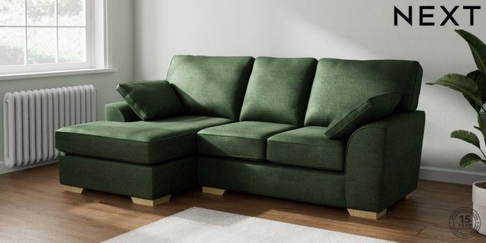 7.2.6 Buy Stamford Small Sofa Chaise - Left Hand Luxe Chenille Dark Green Large Square Angle - Light from the Next UK online shop Click here to use our accessible website
