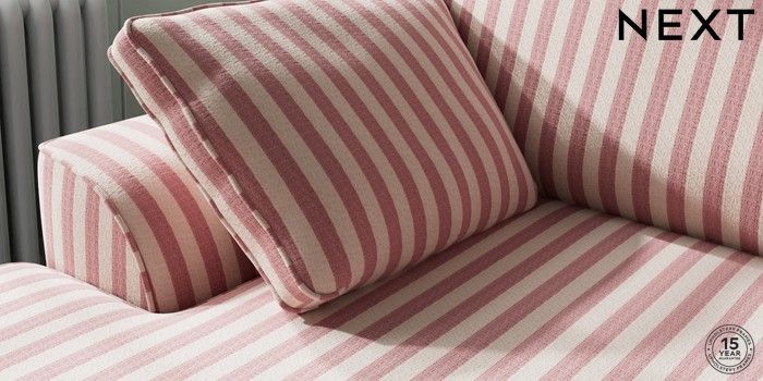 7.3.1 Buy Stamford Medium Sofa Chaise - Left Hand Bold Chenille Stripe Dark Pink Large Square Angle - Gunmetal from the Next UK online shop Click here to use our accessible website