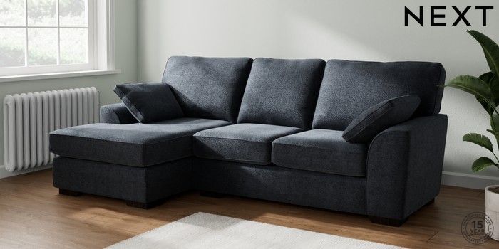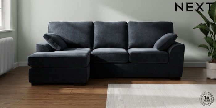 7.2.10 Buy Stamford Medium Sofa Chaise - Left Hand Boucle Chenille Dark Slate Blue Large Square Angle - Dark from the Next UK online shop Click here to use our accessible website
