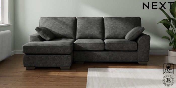 7.3.1 Buy Stamford Medium Sofa Chaise - Left Hand Boucle Weave Easy Clean Charcoal Grey Large Square Angle - Gunmetal from the Next UK online shop Click here to use our accessible website