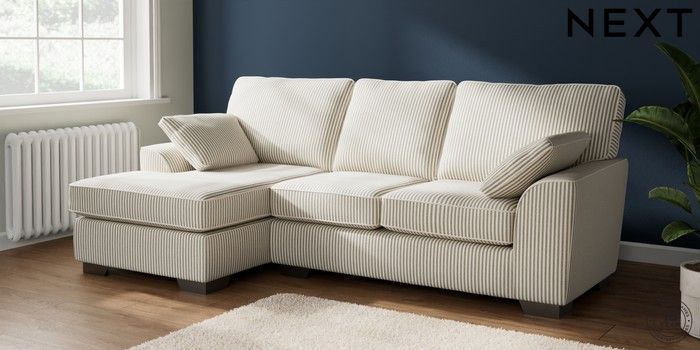 7.3.1 Buy Stamford Medium Sofa Chaise - Left Hand Chenille Stripe Moss Green Large Square Angle - Gunmetal from the Next UK online shop Click here to use our accessible website