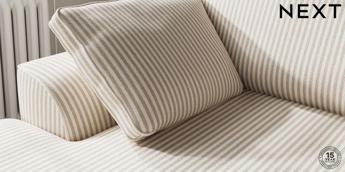 7.3.1 Buy Stamford Medium Sofa Chaise - Left Hand Chenille Stripe Natural Large Square Angle - Gunmetal from the Next UK online shop Click here to use our accessible website
