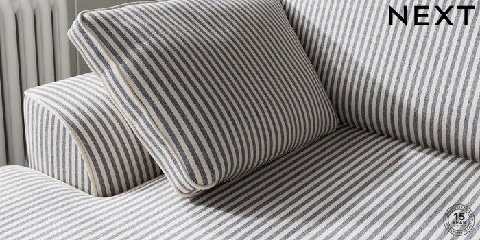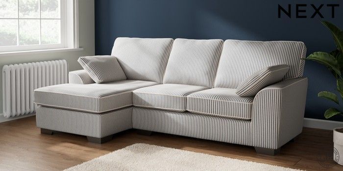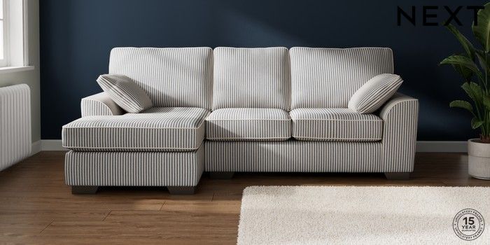 7.3.1 Buy Stamford Medium Sofa Chaise - Left Hand Chenille Stripe Slate Blue Large Square Angle - Gunmetal from the Next UK online shop Click here to use our accessible website