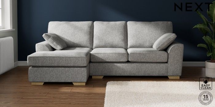 7.2.10 Buy Stamford Medium Sofa Chaise - Left Hand Chunky Boucle Easy Clean Light Grey Large Square Angle - Light from the Next UK online shop Click here to use our accessible website