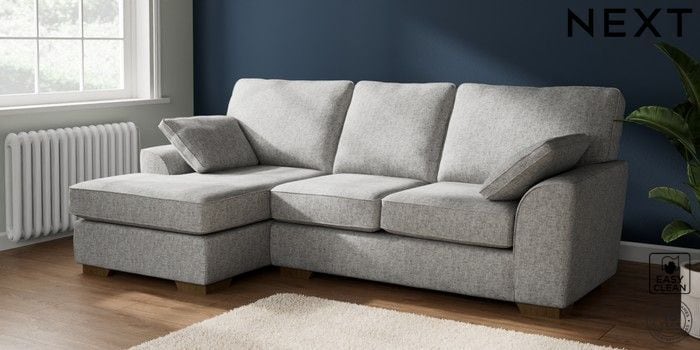 7.2.10 Buy Stamford Medium Sofa Chaise - Left Hand Chunky Boucle Easy Clean Light Grey Large Square Angle - Mid from the Next UK online shop Click here to use our accessible website