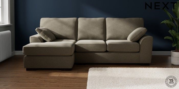 7.2.10 Buy Stamford Medium Sofa Chaise - Left Hand Chunky Marl Light Olive Green Large Square Angle - Dark from the Next UK online shop Click here to use our accessible website