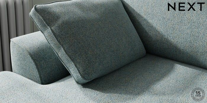 7.2.10 Buy Stamford Medium Sofa Chaise - Left Hand Chunky Marl Mid Blue Large Square Angle - Brushed Brass from the Next UK online shop Click here to use our accessible website