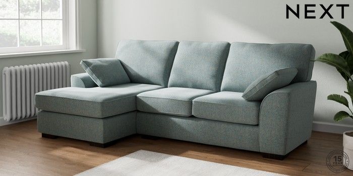 7.2.6 Buy Stamford Medium Sofa Chaise - Left Hand Chunky Marl Mid Blue Large Square Angle - Dark from the Next UK online shop Click here to use our accessible website