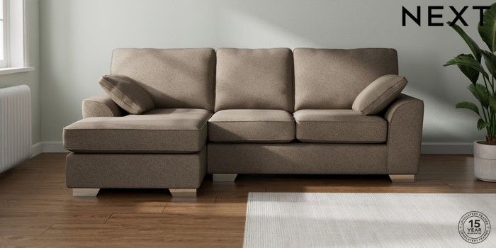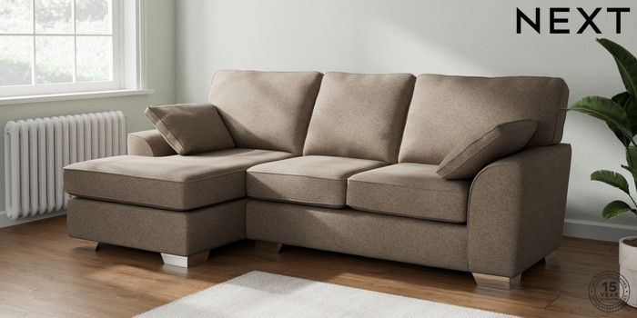 7.2.10 Buy Stamford Medium Sofa Chaise - Left Hand Chunky Weave Dark Natural Large Square Angle - Chrome Metal from the Next UK online shop Click here to use our accessible website