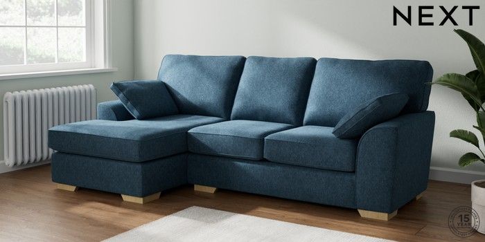 7.2.10 Buy Stamford Medium Sofa Chaise - Left Hand Cotswold Chenille Dark Blue Large Square Angle - Light from the Next UK online shop Click here to use our accessible website
