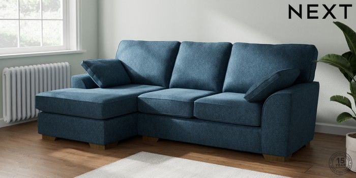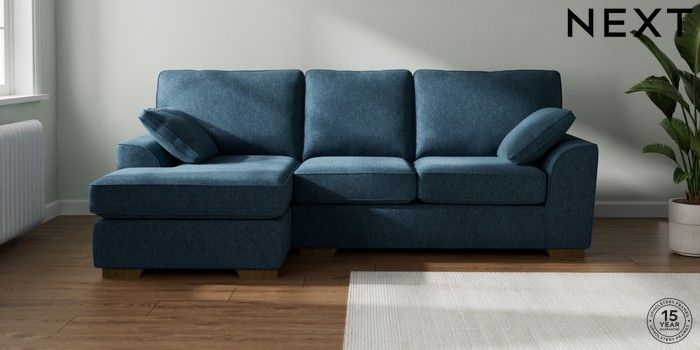 7.2.10 Buy Stamford Medium Sofa Chaise - Left Hand Cotswold Chenille Dark Blue Large Square Angle - Mid from the Next UK online shop Click here to use our accessible website