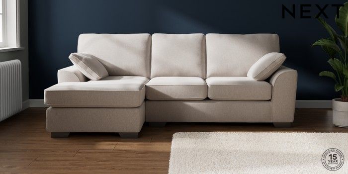 7.2.10 Buy Stamford Medium Sofa Chaise - Left Hand Cotswold Chenille Oyster Large Square Angle - Gunmetal from the Next UK online shop Click here to use our accessible website