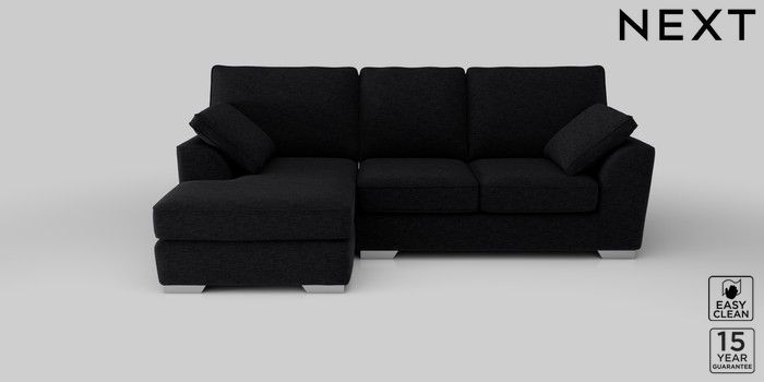6.12.1 Buy Stamford Medium Sofa Chaise - Left Hand Fine Chenille Easy Clean Black Large Square Angle - Chrome Metal from the Next UK online shop Click here to use our accessible website