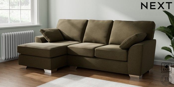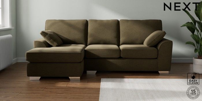 7.3.1 Buy Stamford Medium Sofa Chaise - Left Hand Fine Chenille Easy Clean Dark Moss Green Large Square Angle - Chrome Metal from the Next UK online shop Click here to use our accessible website