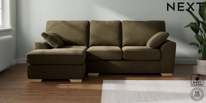 7.2.10 Buy Stamford Medium Sofa Chaise - Left Hand Fine Chenille Easy Clean Dark Moss Green Large Square Angle - Light from the Next UK online shop Click here to use our accessible website
