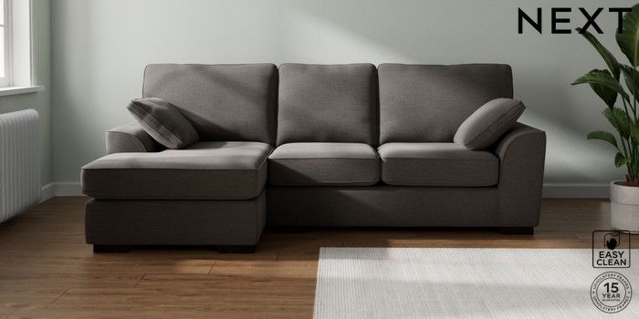 7.2.10 Buy Stamford Medium Sofa Chaise - Left Hand Fine Chenille Easy Clean Dark Smoke Grey Large Square Angle - Dark from the Next UK online shop Click here to use our accessible website