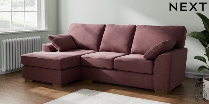 7.2.10 Buy Stamford Medium Sofa Chaise - Left Hand Fine Chenille Easy Clean Mid Mulberry Purple Large Square Angle - Mid from the Next UK online shop Click here to use our accessible website