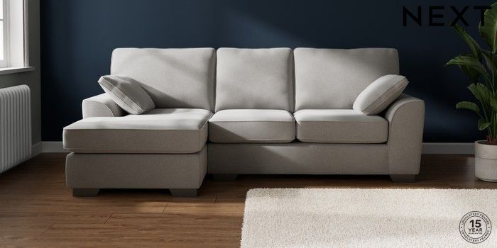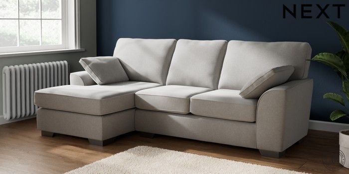 7.2.10 Buy Stamford Medium Sofa Chaise - Left Hand Natural Mix Light Grey Large Square Angle - Gunmetal from the Next UK online shop Click here to use our accessible website