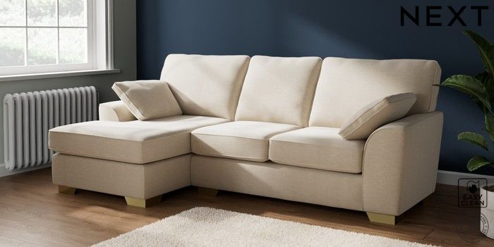 7.2.10 Buy Stamford Medium Sofa Chaise - Left Hand Fine Chenille Easy Clean Oyster Large Square Angle - Brushed Brass from the Next UK online shop Click here to use our accessible website