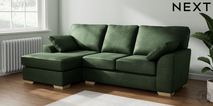 7.2.6 Buy Stamford Medium Sofa Chaise - Left Hand Luxe Chenille Dark Green Large Square Angle - Light from the Next UK online shop Click here to use our accessible website