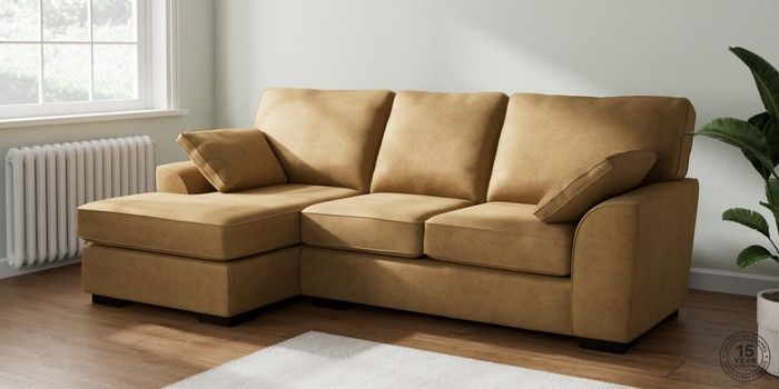 6.12.1 Buy Stamford Medium Sofa Chaise - Left Hand Luxe Chenille Honey Yellow Large Square Angle - Dark from the Next UK online shop Click here to use our accessible website
