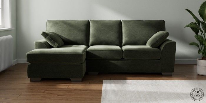 7.0.3 Buy Stamford Medium Sofa Chaise - Left Hand Luxe Chenille Mid Green Large Square Angle - Gunmetal from the Next UK online shop Click here to use our accessible website