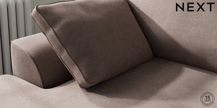 7.2.10 Buy Stamford Medium Sofa Chaise - Left Hand Luxe Chenille Mink Brown Large Square Angle - Brushed Brass from the Next UK online shop Click here to use our accessible website