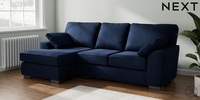 6.12.1 Buy Stamford Medium Sofa Chaise - Left Hand Luxe Chenille Navy Blue Large Square Angle - Gunmetal from the Next UK online shop Click here to use our accessible website