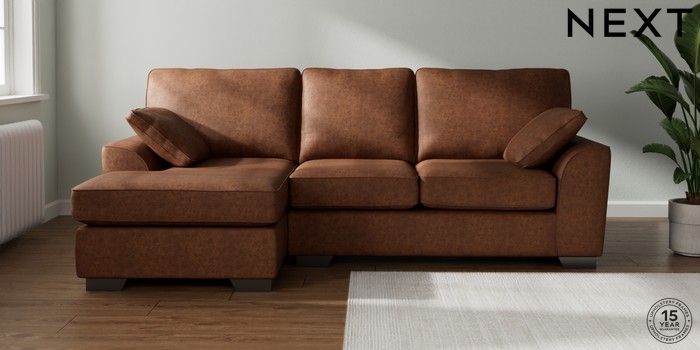 7.3.1 Buy Stamford Medium Sofa Chaise - Left Hand Monza Faux Leather Easy Clean Chestnut Brown Large Square Angle - Gunmetal from the Next UK online shop Click here to use our accessible website