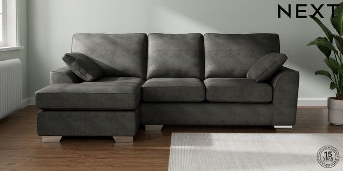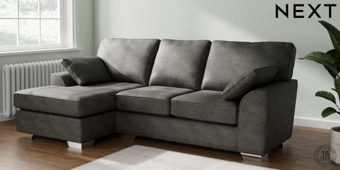 7.3.1 Buy Stamford Medium Sofa Chaise - Left Hand Monza Faux Leather Easy Clean Dark Grey Large Square Angle - Chrome Metal from the Next UK online shop Click here to use our accessible website