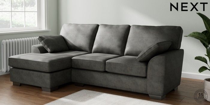 7.3.1 Buy Stamford Medium Sofa Chaise - Left Hand Monza Faux Leather Easy Clean Dark Grey Large Square Angle - Gunmetal from the Next UK online shop Click here to use our accessible website