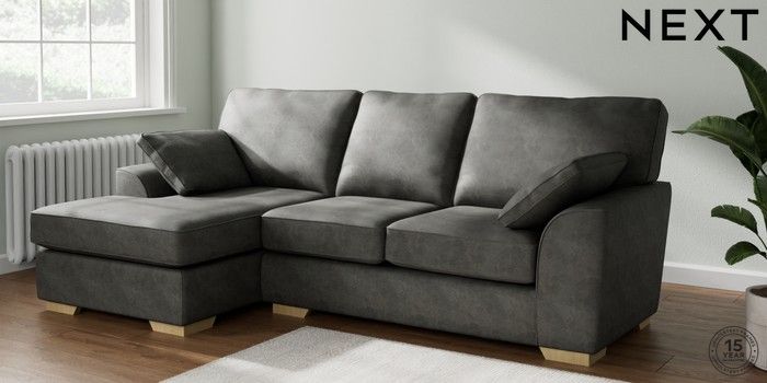 7.2.6 Buy Stamford Medium Sofa Chaise - Left Hand Monza Faux Leather Easy Clean Dark Grey Large Square Angle - Light from the Next UK online shop Click here to use our accessible website