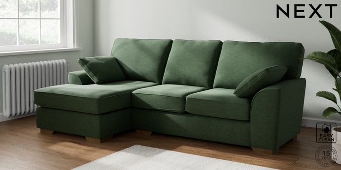 7.2.6 Buy Stamford Medium Sofa Chaise - Left Hand Fine Chenille Easy Clean Mid Khaki Green Large Square Angle - Mid from the Next UK online shop Click here to use our accessible website