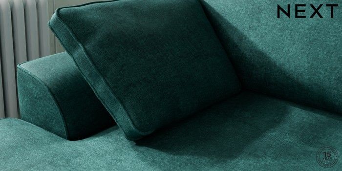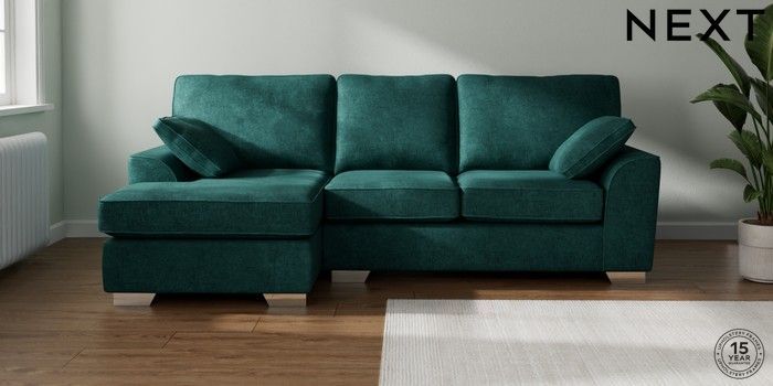 7.2.10 Buy Stamford Medium Sofa Chaise - Left Hand Plush Chenille Dark Teal Green Large Square Angle - Chrome Metal from the Next UK online shop Click here to use our accessible website