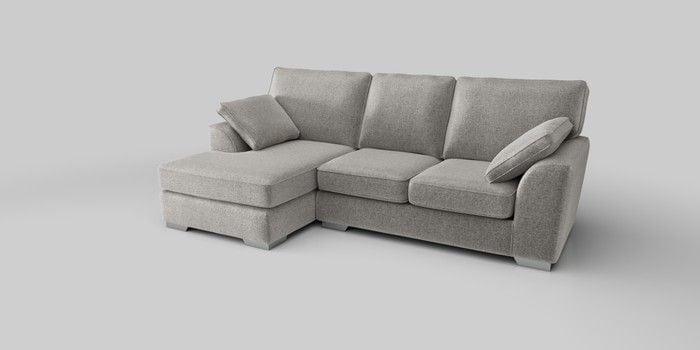 6.12.1 Buy Stamford Medium Sofa Chaise - Left Hand Plush Chenille Light Grey Large Square Angle - Chrome Metal from the Next UK online shop Click here to use our accessible website