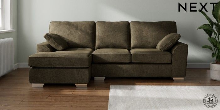 7.2.10 Buy Stamford Medium Sofa Chaise - Left Hand Plush Chenille Moss Green Large Square Angle - Chrome Metal from the Next UK online shop Click here to use our accessible website